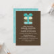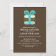 Stylish and chic invitations feature a cute vector illustration of six brown, beige, and blue or aqua french macaron cookies inside a gift box with a bow on top. Visit our store for more colour options and matching products.
