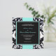 Black & White Damask Background with Blue Accent Wedding Invitations