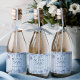 Pop the bubbly and celebrate at your "something blue" bridal shower with our custom mini champagne bottle labels featuring classic chambray stripes and navy floral line art.