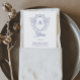 This design features a blue porcelain victorian chinoiserie crest along with a lovely combination of elegant and classic fonts. See the entire collection for more matching items!