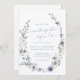 Elegant dusty blue wildflower wreath "something blue before I do" bridal shower invitation.