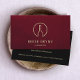Modern and elegant, featuring simple gold bottle logo on burgundy red linen image background