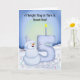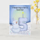 Celebrate your son's fifth birthday with this delightful winter illustration featuring a cheerful snowman proudly admiring the big snowy “5” he has just built. Snowballs are scattered around the base of the number, adding playful texture to the scene, while soft winter flowers bring a gentle, seasonal touch. The cozy colors and whimsical details make this design perfect for little ones who love winter magic.