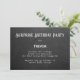 Invitation à la fête d'anniversaire noire Chalkboard. Célébrez sa journée spéciale avec cette simple invitation avec des polices imprimées grunge en blanc sur noir.