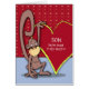 Ce mignon singe tient un coeur d'amour pour votre fils. L'Arrière - plan est rouge avec des points et des rayures. Le coeur est plus grand que le singe car il en montre le nombre !