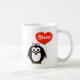 Son et sien ensemble assorti des tasses | de pingouin. Le décor à la maison mignon pour juste marié nouvellement l'épouse/couple de mari et d'épouse. Idée romantique de cadeau pour des nouveaux mariés/jeunes mariés. Également amusement pour l'anniversaire de mariage. Couleur faite sur commande d'arrière - plan derrière le coeur rouge. Le double a dégrossi conception. Bande dessinée animale mignonne d'oiseau avec le ballon rouge de coeur.