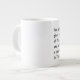 Jumbo Certains jours, une tasse de joe de taille régulière ne le fera pas. Quand vous avez besoin d'une dose de caféine en plus, utilisez votre tasse XL de Zazzle. Peut contenir jusqu'à 591 ml. Idéal pour des soupes, céréales, glaces et du chili aussi ! Cette tasse géante à une anse en forme de C pour une utilisation confortable. Dimensions : Hauteur : 4,5" Diamètre : 3,9" Capacité : 20 onces Micro-ondes et lave-vaisselle sans danger Construction céramique forte Satisfait ou dépasse les exigences de la FDA en matière de salubrité des aliments et des boissons Conseil du concepteur : Pour assurer l’impression de haute qualité, veuillez noter que l’aire de conception personnalisable de ce produit mesure 4" de haut x 10,5" de large