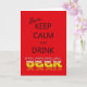 A funny card urging you to keep calm and drink beer on your birthday. A spoof on the internet meme.