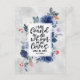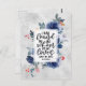 Inspirational quote scripture greeting card depicts an elegant floral watercolor design with dark blue flowers and red berries on a grey background. It features Bible Verse Song of Solomon 3:4, "I have found the one whom my soul loves." The inside greeting is from Numbers 6 24-26, "The Lord bless you and keep you; The Lord make His face shine upon you, ...And give you peace." It can be customized and the card used for many occasions.