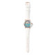 Featured is a White swan family and flying swans in a pretty seaside setting