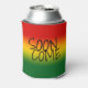 The famous three-toned stripe colours synonymous with Jamaican culture creates the perfect background for the all-caps Jamaican phrase, SOON COME.