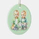 Birth or Pregnancy announcement. Cute blue and green themed Christmas ornament with two twins in blue and green. Twin boys announcement. Personalized the due date on the back.