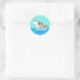 These stickers feature an illustration of Sophie, a dog cartoon character, relaxing on her rainbow unicorn shaped inflatable pool float. Sophie is a brown and white dog that is wearing a pineapple bathing suit. The sticker has wavy line design and sparkle accent. "Thank You" is in a balloon shaped font, and the signature portion for the name is in pink.