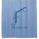 Simple but sophisticated and elegant. Grey curtain with a beautiful F monogram and last name personalization.