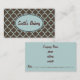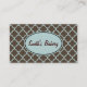 An elegant brown and aqua pattern decorates this stylish business card. Customize this business card to suit your needs. The design is from original art. Use this professional business card for a bakery, salon, appointments, a dentist, etc...