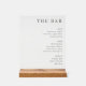 This elegant wedding menu features a minimalist design with a clean, centered layout that emphasizes clarity and sophistication. The monochromatic color palette of black text on a white background enhances readability, while the use of serif typography adds a touch of classic elegance. Organized into distinct sections for "Beer," "Wine," and "Spirits," this design is perfect for upscale events, conveying a refined mood through its straightforward and sophisticated presentation. Ideal for couples seeking a timeless and stylish bar menu option.