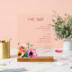 This acrylic sign features a sophisticated layout with a clean white background, highlighted by vibrant red serif typography. The design includes sections for "Beer," "Wine," and "Spirits," each listing popular options in an elegant, organized manner. A colorful floral illustration on the left adds a touch of nature and softness, balancing the structured text. Perfect for enhancing the ambiance of any bar or home setting, this sign combines elegance with functionality, creating a welcoming atmosphere for guests.
