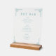 This acrylic sign features a sophisticated, minimalist design with a clean layout and elegant typography. The color palette includes a solid black background contrasted by crisp white text and subtle teal accents in the geometric Greek key motifs that frame each section. Organized into "BEER," "WINE," and "SPIRITS" categories, the menu is presented in a modern yet classic style, using both serif and sans-serif fonts for visual interest. Perfect for an upscale bar or home entertainment area, this sign exudes a refined and professional atmosphere, making it an inviting addition to any establishment.