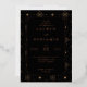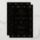 This elegant wedding invitation features a sophisticated black and gold colour palette, creating a luxurious and festive atmosphere. The design showcases a symmetrical layout with decorative elements such as stars and fireworks framing the central text block, enhancing its celebratory feel. With clean lines and flat colours, it combines modern aesthetics with classic charm, making it perfect for formal events. The typography is carefully chosen to emphasize key details while maintaining readability, ensuring that your special day is communicated with clarity and style. Ideal for weddings, this invitation sets the tone for an unforgettable celebration.