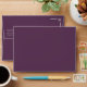 This wedding envelope features a sleek, minimalist design with a solid dark purple background. The layout is balanced and modern, showcasing centered text in a clean sans-serif font for the names and address, while a stylized handgun icon adds an unexpected graphic element on the right side. The monochromatic color palette enhances the sophisticated and contemporary feel of the design, making it perfect for couples looking to add a unique touch to their wedding stationery.