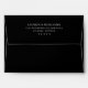 This elegant wedding envelope features a minimalist design with a clean, modern aesthetic. The layout is centered on a black background, showcasing crisp white text in a sans-serif font that conveys sophistication and clarity. With ample negative space around the text, it emphasizes the names, address, location, and zip code, making it perfect for formal invitations. The straightforward typography and monochromatic color palette create a timeless look ideal for any special occasion.