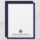 Make a strong impression with our Sophisticated Blue and Gold Business Letterhead. This letterhead design features a white background framed in navy blue with a gold seal logo emblem that can be used as is or customized with your brand; your company name and contact information are elegantly presented in golden classic typography. The back is solid navy with a smaller logo emblem in the lower thirds, bringing cohesion to this professional design. Each sheet exudes professionalism and sophistication, making it perfect for official correspondence and important business documents. Elevate your brand identity with this exquisite letterhead.