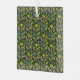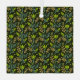 Seamless floral pattern with green leaves and buds on a dark background, featuring intricate blue and beige branches, evoking a natural, elegant feel.