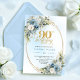 Sophisticated Bohemian Blue Floral Gold 90th Bday Invitation
