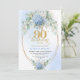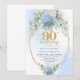 Sophisticated Boho Blue Floral Gold 90th Birthday Invitation
