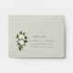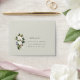 Sophisticated botanical floral bouquet, wedding rsvp envelopes in soft sage green. Features, golden art deco pattern lined interior.