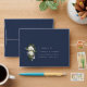Sophisticated botanical floral bouquet, wedding rsvp envelopes in navy blue. Features, golden art deco pattern lined interior.