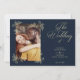 Sophisticated Elegant Flourish Navy Photo Wedding Invitation.