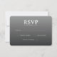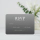 This elegant wedding RSVP card features a minimalist design with a sophisticated gray gradient background, creating a subtle depth that highlights the central text. The layout is clean and organized, utilizing classic serif fonts for a timeless look, perfect for formal events. Customizable fields allow guests to easily respond, enhancing functionality without compromising style. The overall mood is refined and professional, making it ideal for couples seeking a polished and straightforward invitation solution.
