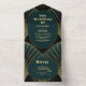 Sophisticated Green and Gold Art Deco Wedding All In One Invitation