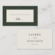This wedding place card features a minimalist design with a dark green rectangular frame and ample white space, creating an elegant and uncluttered look. The layout includes two horizontal lines for customization and the word "table" in a stylish cursive script font, adding a touch of sophistication. The modern aesthetic emphasizes clean typography and geometric shapes, making it perfect for formal events where organization and presentation are key. Its simple yet refined style conveys a sense of order and calmness, ideal for weddings or upscale gatherings.