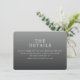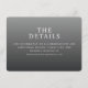 This wedding enclosure card features a minimalist design with a gradient background transitioning from light to dark grey, creating an elegant and sophisticated look. The layout is clean and well-spaced, emphasizing the text hierarchy with bold serif typography for "THE DETAILS" and lighter serif fonts for additional information. The grayscale colour palette adds a modern touch while maintaining a formal tone, perfect for conveying important details clearly. Ideal for weddings, this card provides a professional and straightforward way to direct guests to your website for more information.