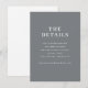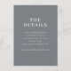 This wedding enclosure card features a minimalist design with a solid charcoal grey background, creating an elegant and modern aesthetic. The layout is simple and balanced, utilizing ample negative space to highlight the centred white serif typography that guides guests to additional details on your wedding website. The clean lines and precise alignment enhance readability while maintaining a formal and sophisticated tone, perfect for conveying essential information in a stylish manner. Ideal for couples seeking a refined and uncluttered look, this card adds a touch of class to any wedding invitation suite.