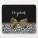 Any sophisticated girly girl of fashion would love to have her name personalized on this trendy black and white leopard print mousepad with an elegant dark brown ribbon tied into a chic bow. Flat printed image, not actual ribbon.