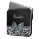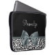 Personalize by adding the name of any girly girl to this sophisticated black and white leopard print 15'' neoprene laptop sleeve with an elegant ribbon tied into a classy feminine bow. This stylish animal print design is a flat printed image, and does not contain actual ribbon.