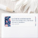 These return address labels feature a sophisticated blend of botanical elegance and modern minimalism. The left side showcases stylized protea flowers in shades of pink and coral with dark blue-green leaves on a deep navy background, while the right side offers a clean white space for text. The classic serif font provides a timeless touch, ensuring readability and visual clarity. Perfect for formal occasions, these labels convey a mood of sophistication and refinement, making them ideal for weddings or elegant events.