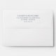 This wedding envelope features a minimalist design with a clean, white background and a deep navy blue colour palette. The layout is simple and elegant, utilizing ample negative space to emphasize the centred text elements. The typography combines a bold serif font for the names with a smaller sans-serif font for the address, creating a sophisticated and modern look. Perfect for couples seeking understated elegance, this design conveys a sense of formality and tradition while maintaining a contemporary feel.