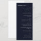 This elegant menu features a sophisticated navy blue background with clean, modern typography that enhances readability and style. The layout is well-organized, dividing sections such as starters, salad, main course, and dessert into distinct categories for easy navigation. Subtle decorative elements add a touch of refinement without overwhelming the minimalist design. Perfect for upscale dining experiences, this menu exudes a classy and inviting atmosphere, ideal for restaurants aiming to impress their guests.