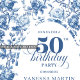 Sophisticated Navy Toile Rose 50th Birthday Invite
