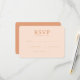 This wedding RSVP card features a minimalist design with a soft peach background and muted brown text, creating an inviting and sophisticated atmosphere. The layout is clean and centered, emphasizing clarity with ample negative space around the bold serif "RSVP" heading and smaller sans-serif date prompt. Customizable fields allow guests to indicate their attendance status and number of attendees, ensuring functionality without compromising style. The modern aesthetic focuses on typography and simplicity, making it perfect for couples seeking elegance in their wedding stationery.