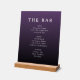This elegant wedding menu features a sophisticated gradient background transitioning from deep purple to darker shades, creating a modern and refined atmosphere. The clean sans-serif typography is arranged in a balanced vertical layout, highlighting categories like "Beer," "Wine," and "Spirits" with clear subheadings for easy reading. The minimalist design focuses on typographic hierarchy without any decorative elements, making it perfect for upscale events where clarity and class are essential. Its contemporary style conveys a professional mood, ideal for weddings that prioritize elegance and simplicity.