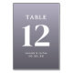 This elegant wedding table card features a minimalist design with a gradient purple background that transitions from light to dark. The layout is clean and modern, highlighting the bold white serif font used for "TABLE 12," which serves as the focal point. Below, smaller text provides customizable space for names and dates, maintaining a sophisticated and formal tone ideal for weddings. The overall style is understated yet refined, perfect for creating an atmosphere of calm sophistication at your special event.