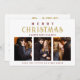 Sophisticated Simple Classic Calligraphy 3 Multi Photo Merry Christmas in Fake Gold and Dark Red Holiday Card with Envelope as a Christmas wedding Save the Date.