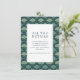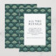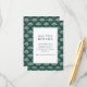This wedding enclosure card features a sophisticated botanical theme with a dense pattern of stylized leaf motifs in various shades of green on a dark teal background. The central white space, framed by a double-line border, contains elegant serif typography that guides guests to visit the couple's wedding website for more details. The design exudes a calm and natural aesthetic, perfect for adding a touch of elegance to your wedding stationery suite.