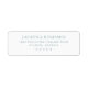 This return address label features a minimalist design with centred text on a clean white background, creating an elegant and modern look. The soft, muted teal colour palette adds a calming touch, while the sans-serif font enhances readability and sophistication. Perfect for formal occasions, this label combines simplicity and style, ensuring your envelopes stand out with a touch of understated elegance.
