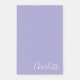 Stay organized in style with these beautifully designed Post-it® Notes featuring a soft lavender background and elegant white script typography for your personalized name or message, placed in the bottom left corner for a modern touch. Perfect for adding a graceful accent to your desk, these notes are ideal for office use, client gifting, or personal reminders. Fully customizable—update the background colour, font style, and text to suit your brand identity or personal aesthetic. A sophisticated and functional addition to any workspace or stationery collection.